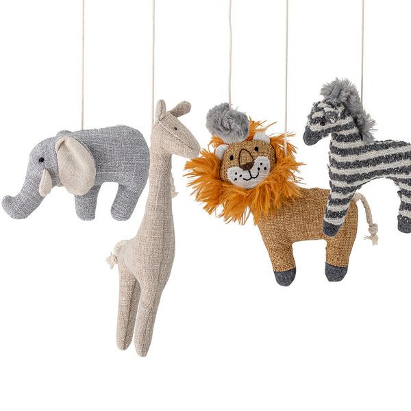 ナチュラルな素材の動物たちがとってもかわいいモビールです。海外製品らしいセンスの配色とデザインがおしゃれです。風で揺れる様子が癒されます。ギフトにもぴったりです。