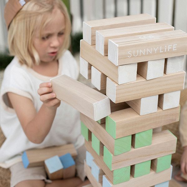 さわやかなシャーベットカラーが綺麗なメガジャンブリングタワー。サニーライフのバランスジェンガゲームです。天然木でできたピースは、軽量でありながら従来のジェンガゲームのピースよりも大きく、耐久性も◎ ゲームとしてだけでなく、積み木やドミノ遊びなど遊び方は様々です。