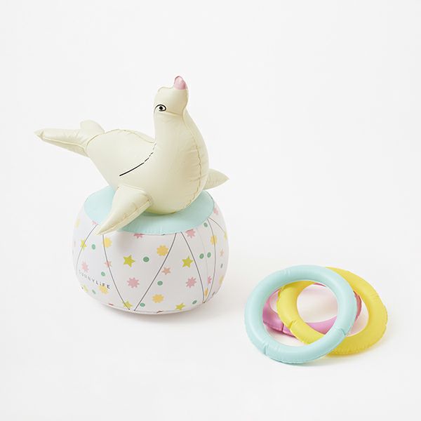 サーカスのアシカがモチーフのわなげゲームです。