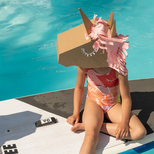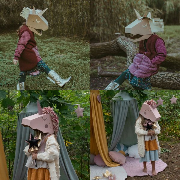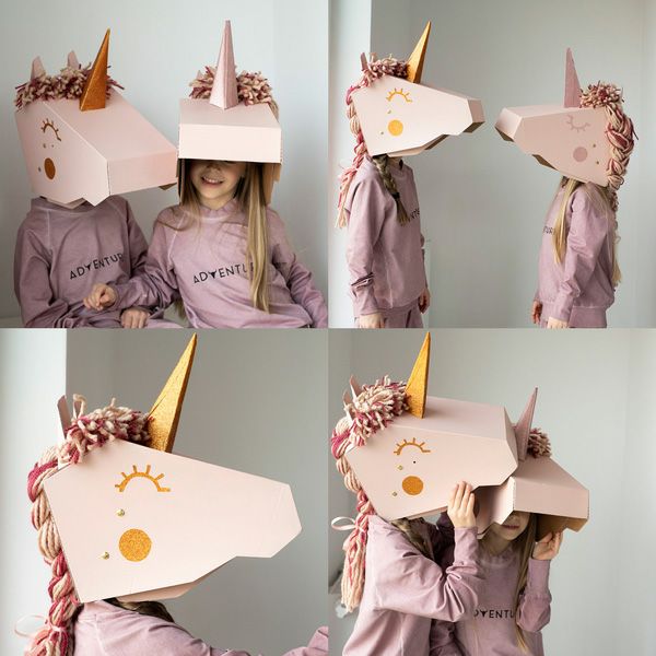 ダンボールで作る、ユニコーンのマスクの工作キット。