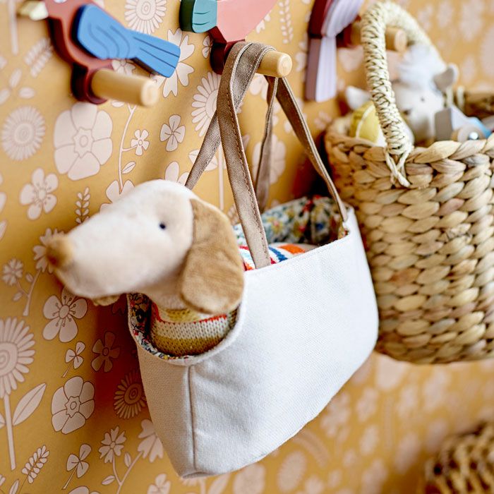 リバーシブルのバッグにいれて持ち運ぶこともできて、どこでも犬のぬいぐるみと一緒に遊ぶことができます。