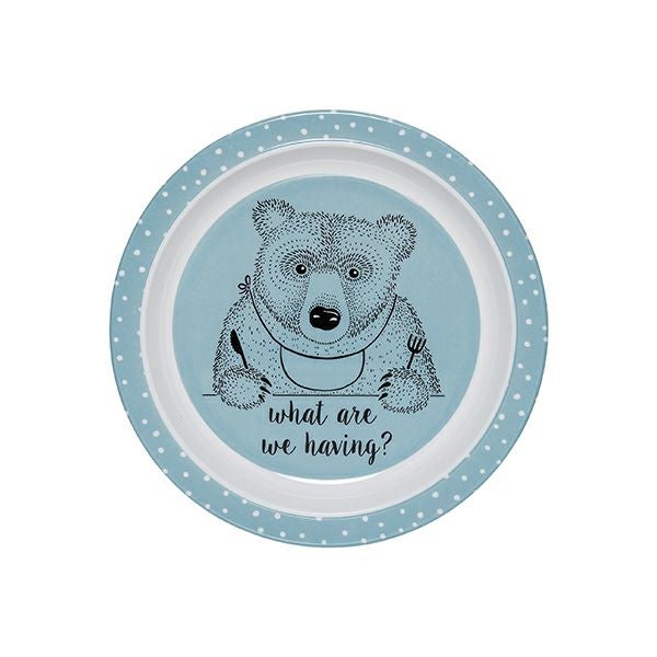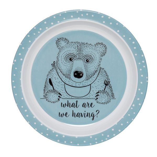 「何を食べようなかな」と考える表情のクマのデザインがとってもかわいいブルーのプレート。メラミンで作られているため、硬くて丈夫で熱に強く、保温性に優れ、衛生的であるのが特徴です。朝食やワンプレートのランチにぴったりのサイズ感。ギフトにもおすすめです。ローズ、ブルーの2カラーございます。