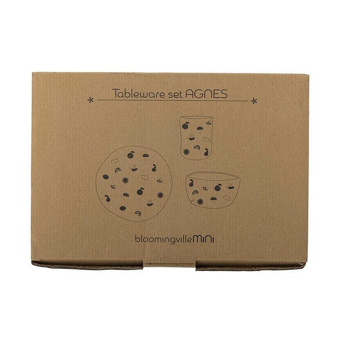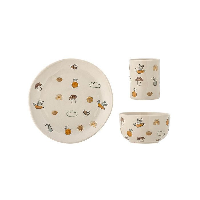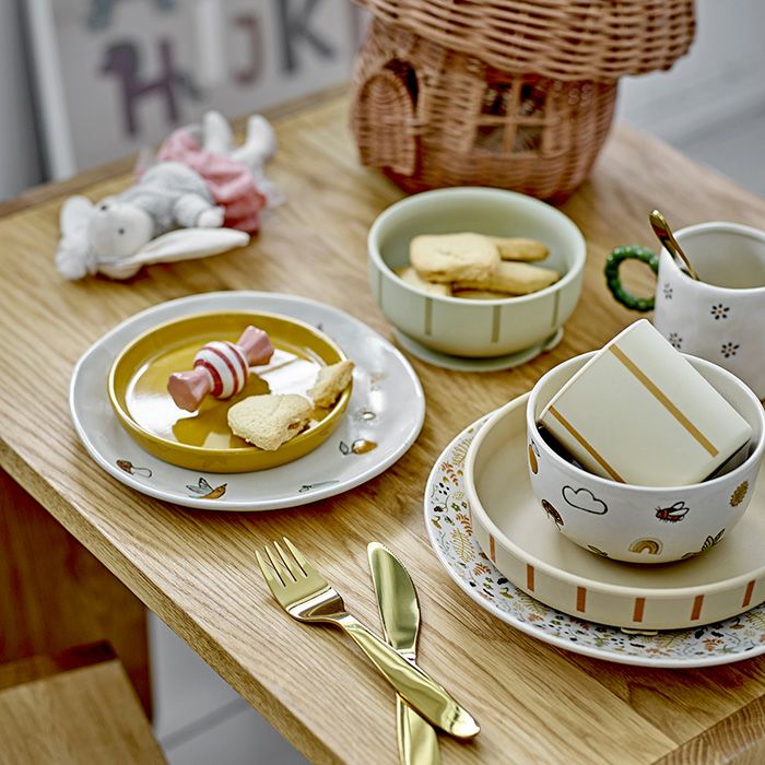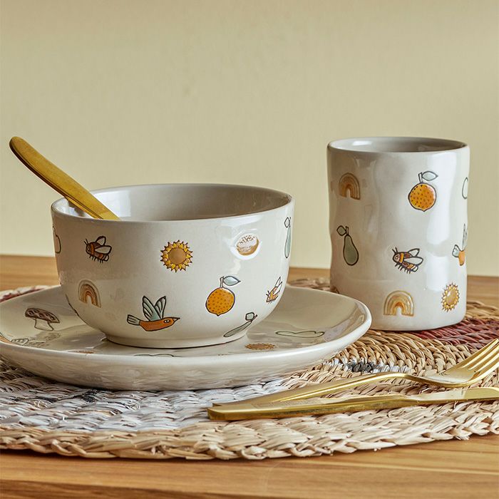 キノコや鳥などの模様が可愛く描かれたテーブルウェアセット。