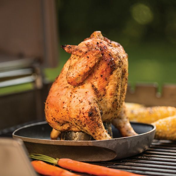 特許取得済みのロースト用キットです。鶏肉の中に水分と風味を吹き込み、丸鶏の調理に最適です。くぼみ部分にビールやワインなどのドリンクを入れて焼けば香りづけも可能。