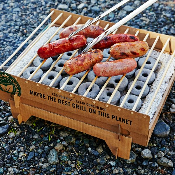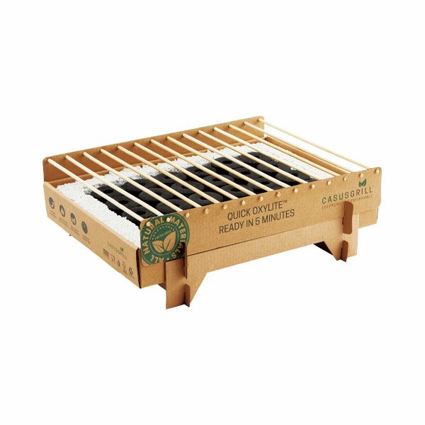 ダンボールと竹炭、火山石、竹の天然素材でできたディスポーサブルグリル。フォトジェニックでエコフレンドリーなクラフトグリルなら、バーベキューのワンシーンをもっと楽しむことができます。四隅の竹炭に着火するだけで使用でき、調理時間は60分!大掛かりなキャンプ用品とは違い、1回使い切りのお手軽さも使いやすさのポイント。軽くてコンパクトなので、山や川での本格キャンプだけでなく、野外フェスやピクニックにも。休日のベランダバーベキューや、ちょっとだけ炭火で焼きたいお料理の時にも。デンマークのCASUSGRILL(カサスグリル)社の製品です。