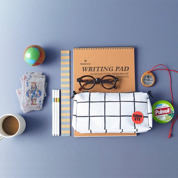 バッグ・イン・バッグとして、常時持ち歩きたいモバイル防災用ポーチ。グッズのディレクション、および各セットに同封されている小冊子作成は、女性誌「Hanako」が監修。