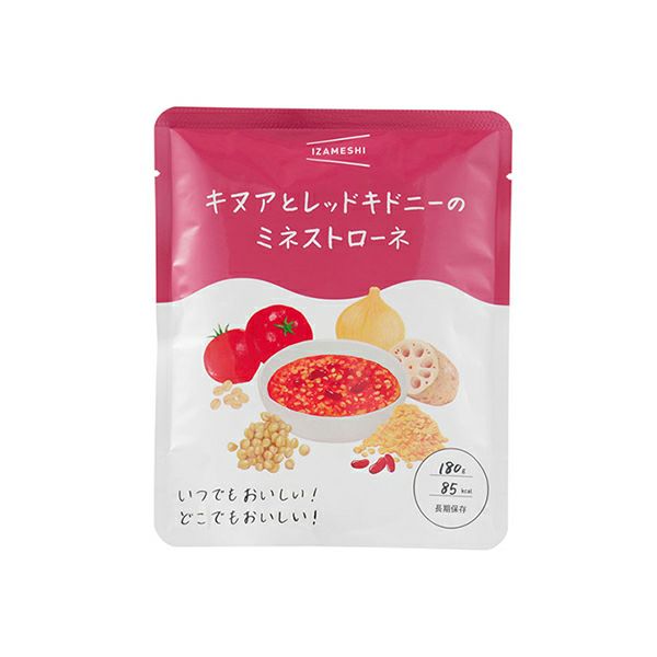 原材料 | トマトピューレづけ(イタリア製造)、野菜(たまねぎ、れんこん、にんじん、セロリ)、レッドキドニー(赤いんげん豆)、ひよこ豆、オーツ麦、キヌア、でん粉、食塩、粉末ブイヨン、(一部にゼラチンを含む)