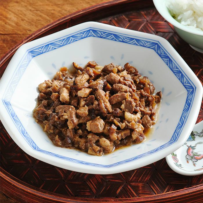 豚バラ肉を醤油と砂糖で甘辛く味付けした、台湾の人気メニュー「ルーローハン」です。