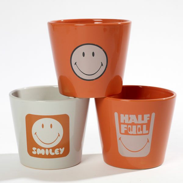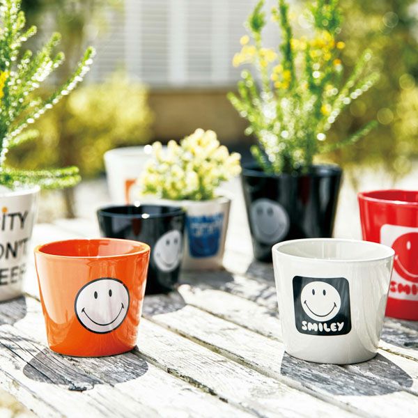 どこか懐かしい雰囲気のある、スマイリーポット。鉢底穴があいていないため、ペン立てや小物入れなど様々な用途でご使用いただけます。