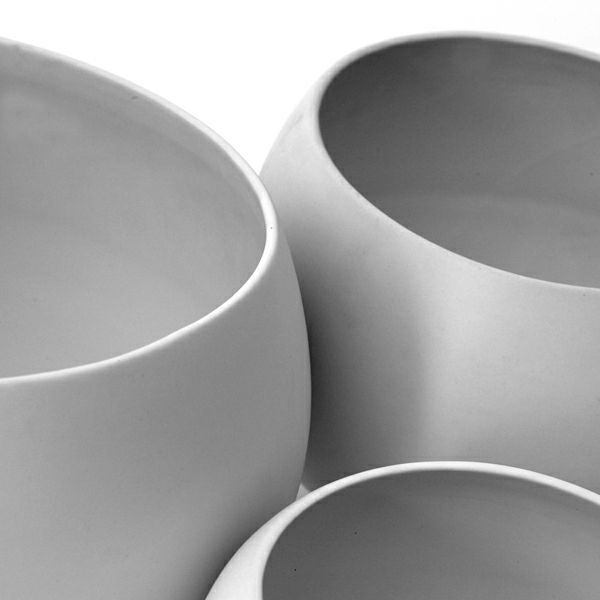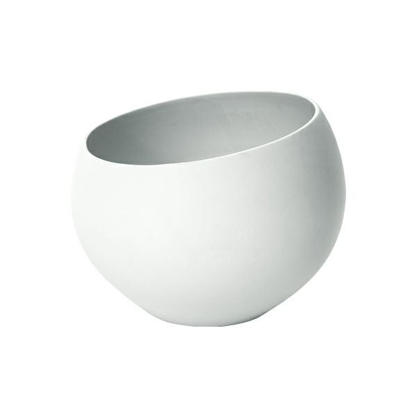 コロンとした丸い形が可愛らしい鉢カバー。なめらかな質感とマットなホワイトがまるで卵のよう。ピュアなイメージを活かし、さわやかな緑色の観葉植物と組み合わせがおススメです。