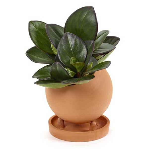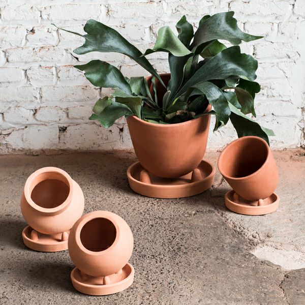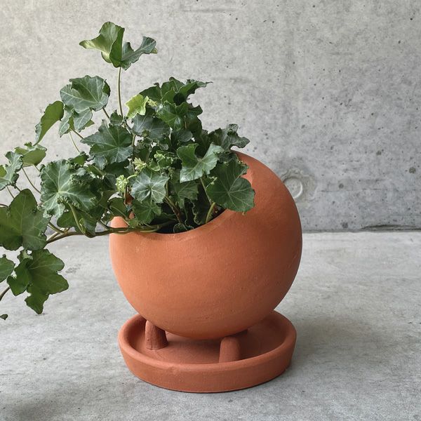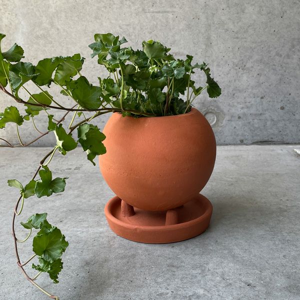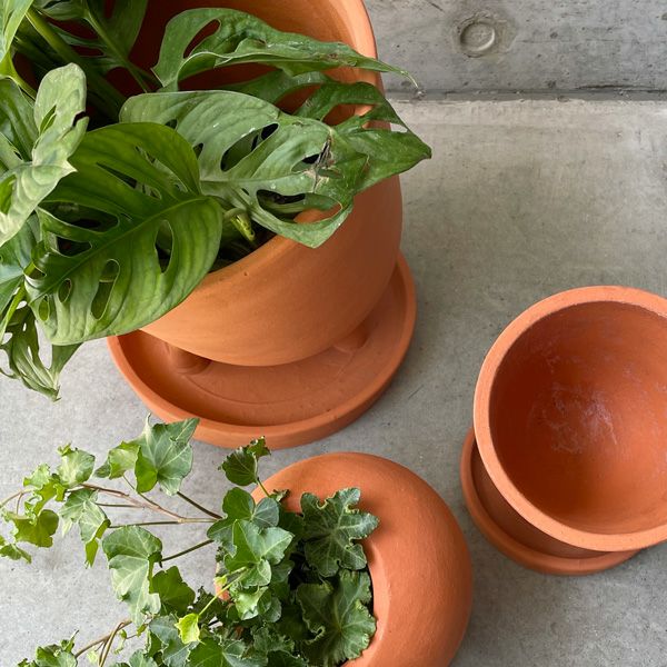 テラコッタ素材のソーサー付きのポット。オレンジが強い明るめのアースカラーは、植物との相性抜群です。