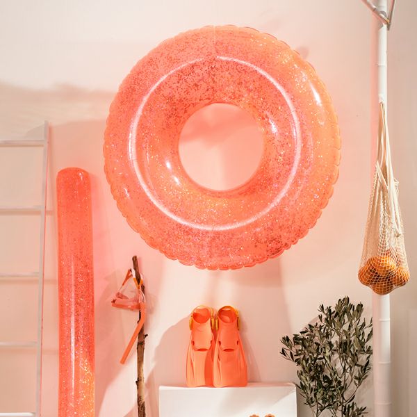 水の上に浮かびながらリラックスできる、ヌードルのようなシンプル&ユニークなフロートです。グリッターの輝きが夏らしくとても華やか。他の人と被らない、ポップでキュートなアイテムで注目を集めましょう!
