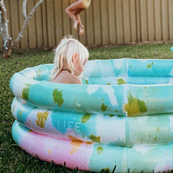 爽やかなカラーがフォトジェニックなプールです。最大容量は270L。お庭で夏を楽しむのにぴったりです。ポリ塩化ビニル製で耐久性があり、床は膨らむ柔らかい素材でできています。ポップでキュートなアイテムです。