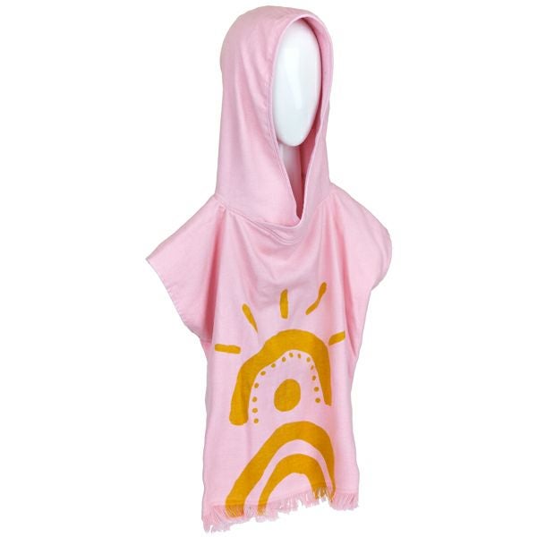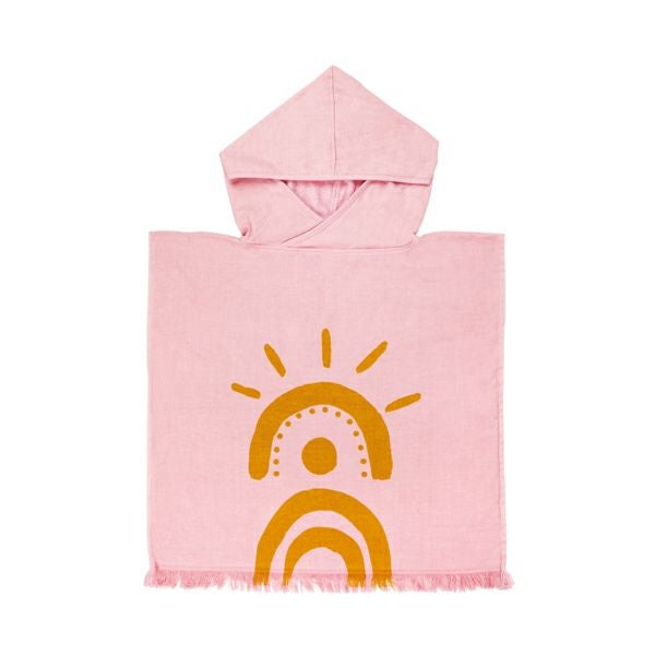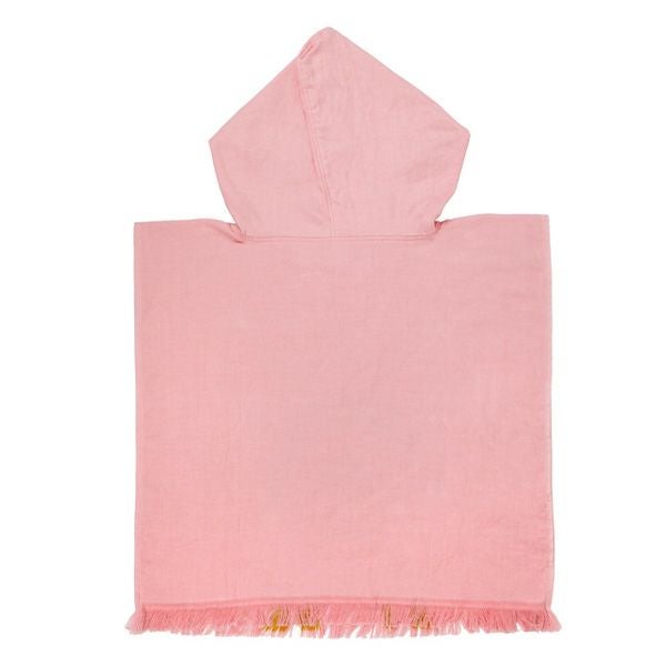 ビーチやプールで使うのにぴったりなかわいらしいポンチョ。綿100%で作られており、柔らかな肌触りで、軽量です。吸水性のある裏地もポイントです。