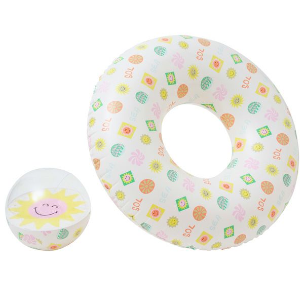 リゾート気分を盛り上げる、浮き輪とビーチボールのセット。