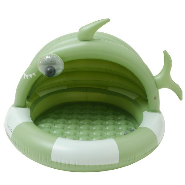 口を大きく開けたサメがユニークなキッズ用のプールです。