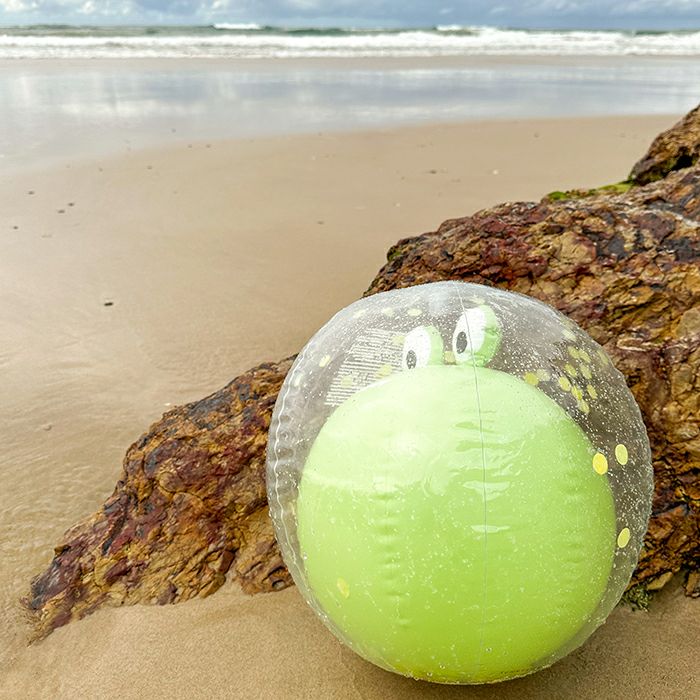 いまにも飛び出てきそうなキャラクターを閉じ込めたビーチボール。