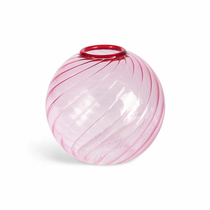 球体のガラスベース。1色の濃淡で表現されたデザインはポップな色でも落ち着いた印象に。