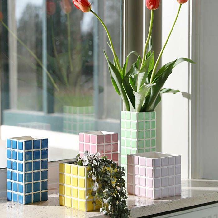 ポップなグリーンが映えるフラワーベース。