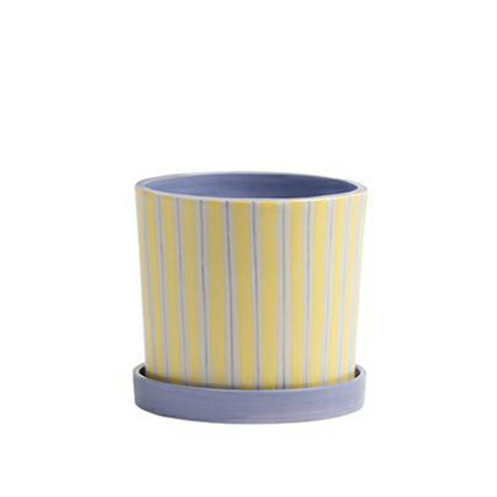 手描きのストライプ柄がユニークで、愛着が湧くデザインのポットです。