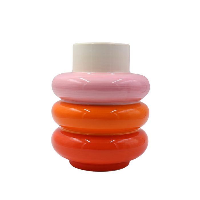 陽気な色彩とひねりの効いたデザインが特徴のフラワーベース。