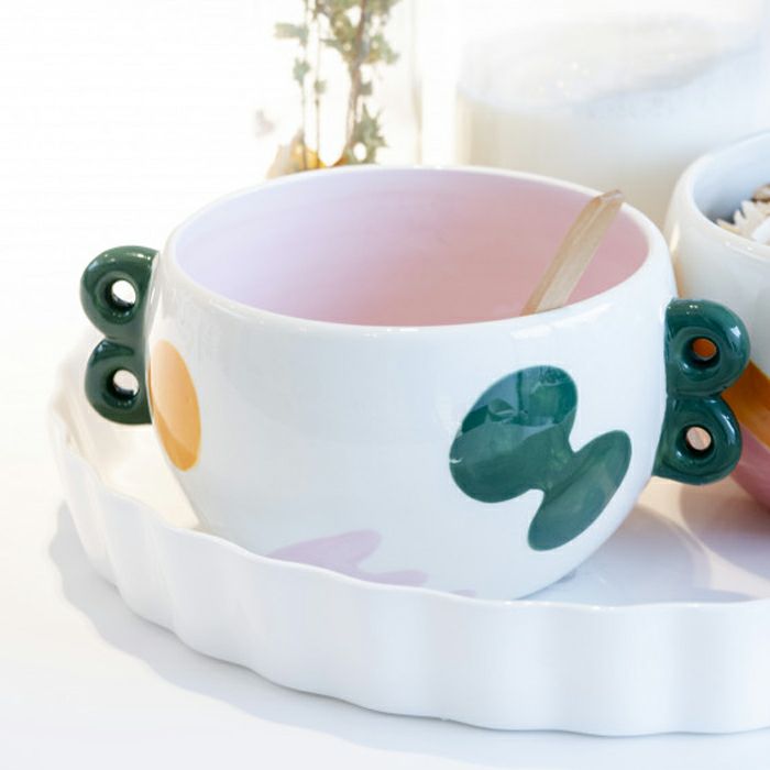 抽象的なデザインと洗練された色の組み合わせがおしゃれなボウル。