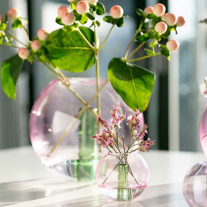 まるい形にガラスの質感が美しい小さなフラワーベースです。