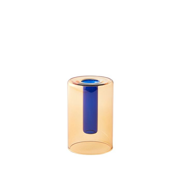 円柱型の形状にガラスの質感が美しい小さなフラワーベースです。