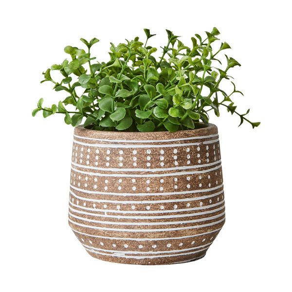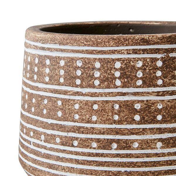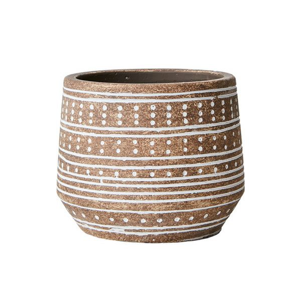 コンクリート製の鉢カバー。アースカラーでグリーンとの相性もよく、どんなインテリアにも馴染みやすいです。サイズ違いで並べても◎