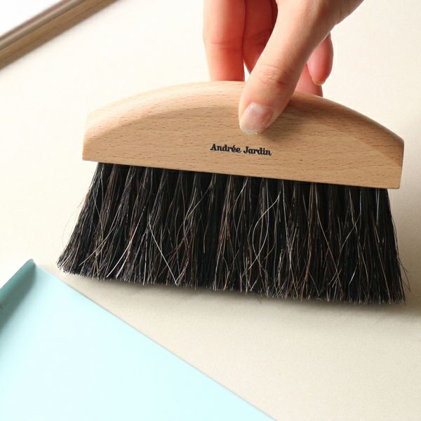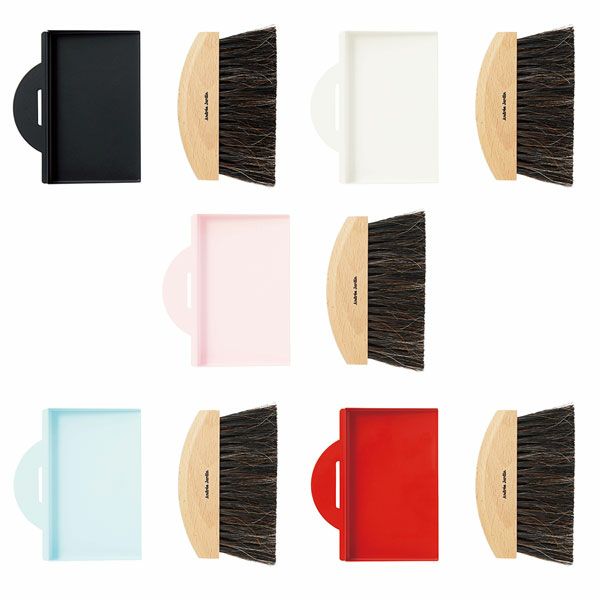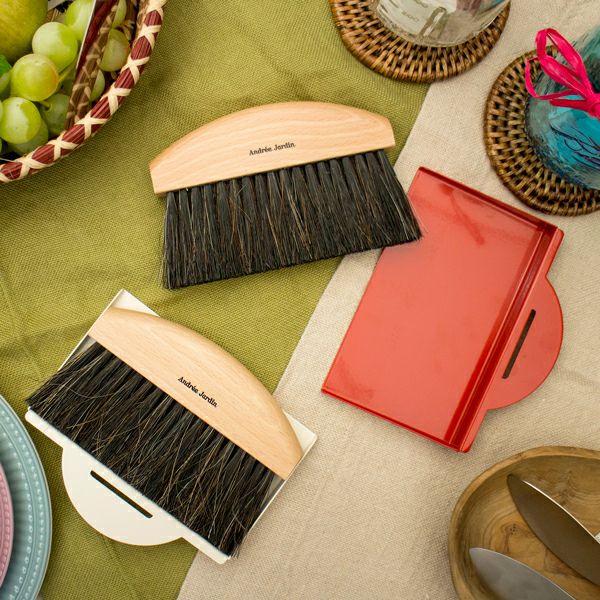 職人の手作りブラシ。食卓の食べこぼしや机の小さなゴミなどを集めるのに便利なハンドブラシとダストパンのセット。使っていると思わず楽しくなってしまうようなカラーリング。専用のボックスに入っているのでギフトにもオススメ。