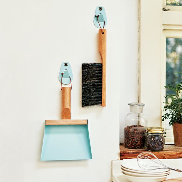 ハンドブラシとダストパン、フックの3点セット。ブラシとダストパンをかけられるフックが2つ付属しています。使っていると思わず楽しくなってしまうようなカラーリングで、ギフトにもオススメです。