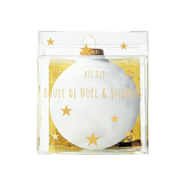 真っ白のボールオーナメント。付属の金色のステッカーを貼って、オリジナルのオーナメントを作れるセットです。シールにはハートや星などのクリスマスモチーフから、数字やアルファベットなども揃っています。名前や記念日をいれてプレゼントしても素敵です。大好きな人と、お子様と、クリスマスの飾りつけを一緒に楽しめるアイテムです。