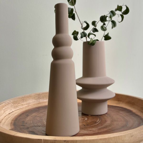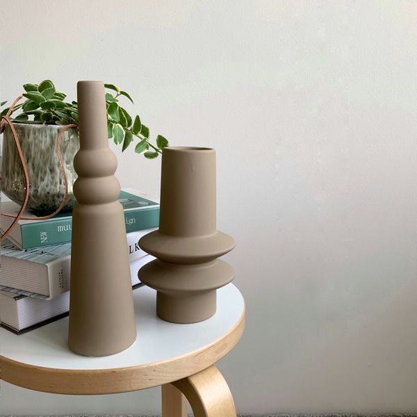 こっくりとしたホワイトカラーの個性派デザインベース。特徴的な形とマットな素材で植物がよく映えます。ベースとして使ったり、そのままオブジェとして使ってもインテリアのアクセントになります。