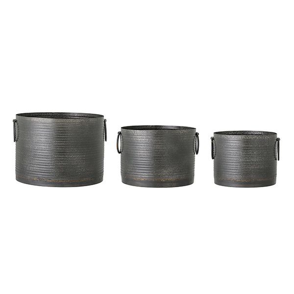 ジャンクな風合いがおしゃれな鉢カバー。鉢カバーだけでなく、小物入れとしてもお使いいただけます。サイズ違いで並べても素敵です。
