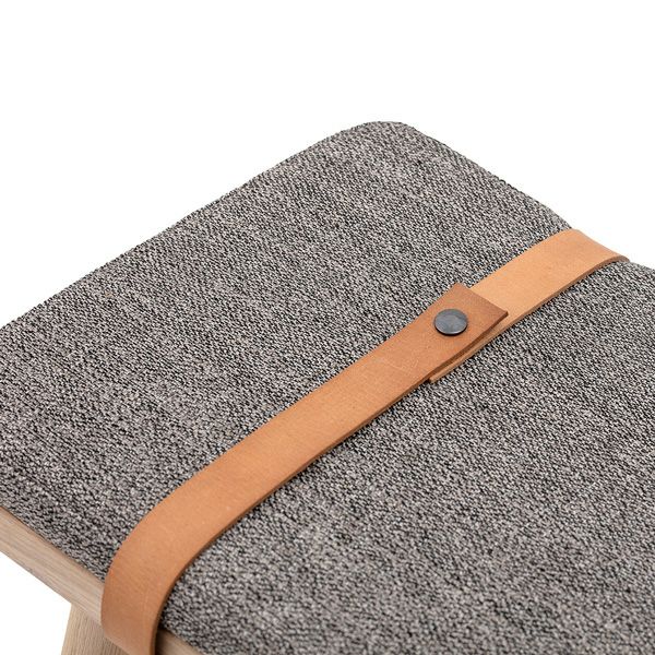 パッド入りのクッションは装飾的な革ベルトで固定されています。