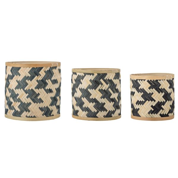 ブラック×ナチュラルの配色がスタイリッシュな竹製バスケット。