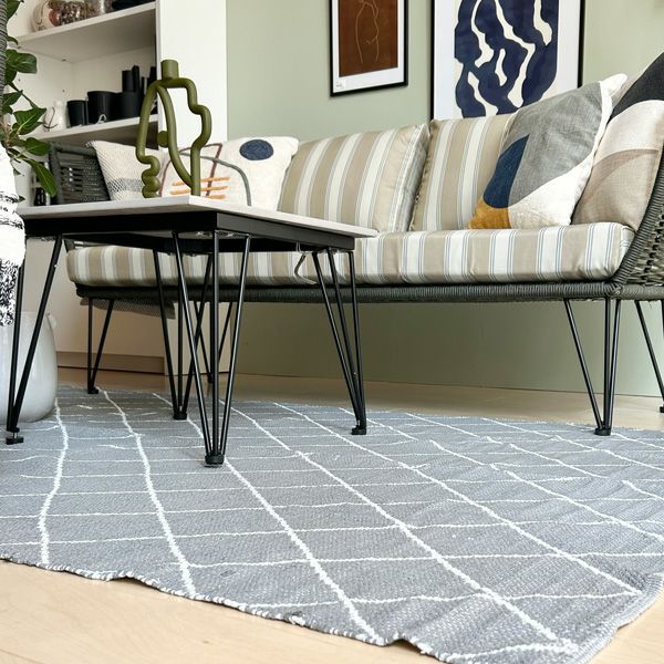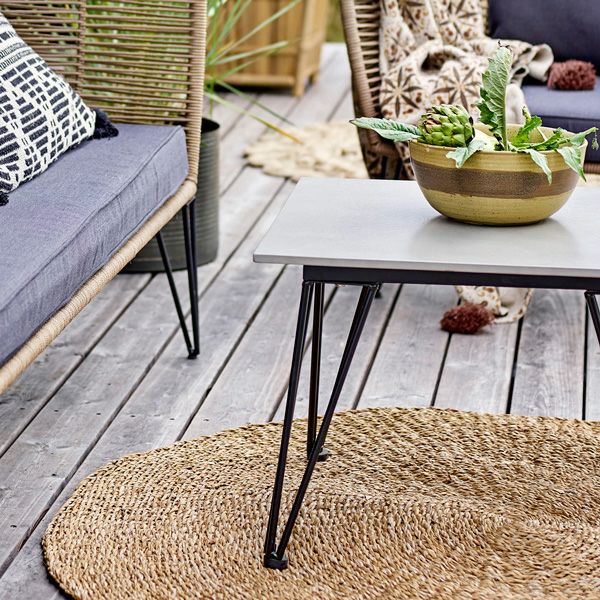 黒い金属の脚とセメントの天板組み合わせたテーブル。