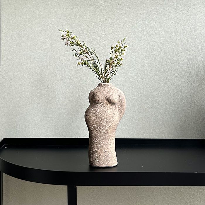 手作業で装飾されたボディ型のユニークな花瓶です。