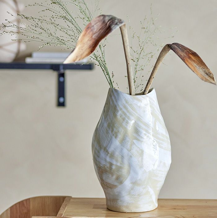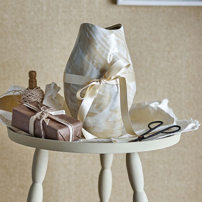 白とベージュの濃淡が美しいフラワーベース。