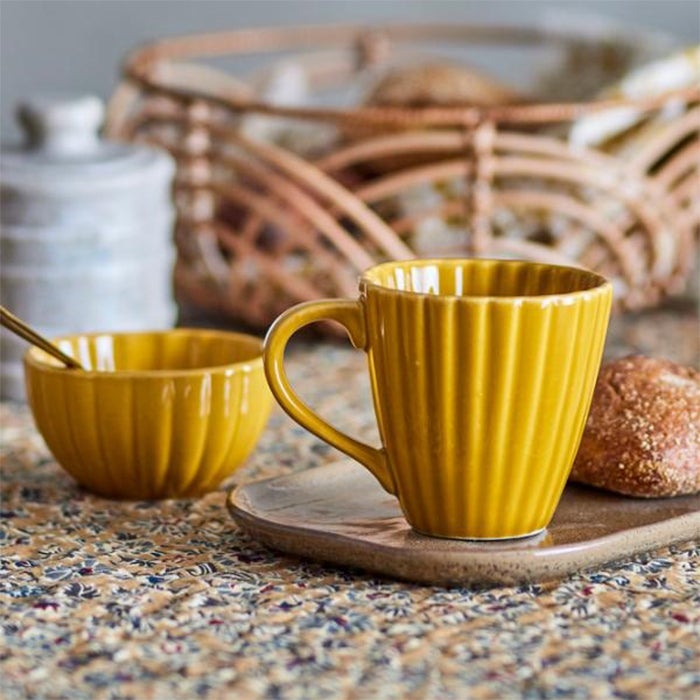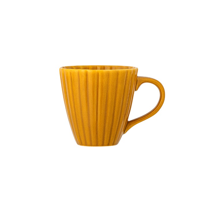 縦に施されたリブデザインが陰影を生み、シンプルながらも立体感のある仕上がりです。持ちやすいハンドルと程よいサイズ感で、日常使いにぴったり。朝のコーヒータイムやリラックスタイムを楽しく演出します。ギフトにもおすすめの一品です。