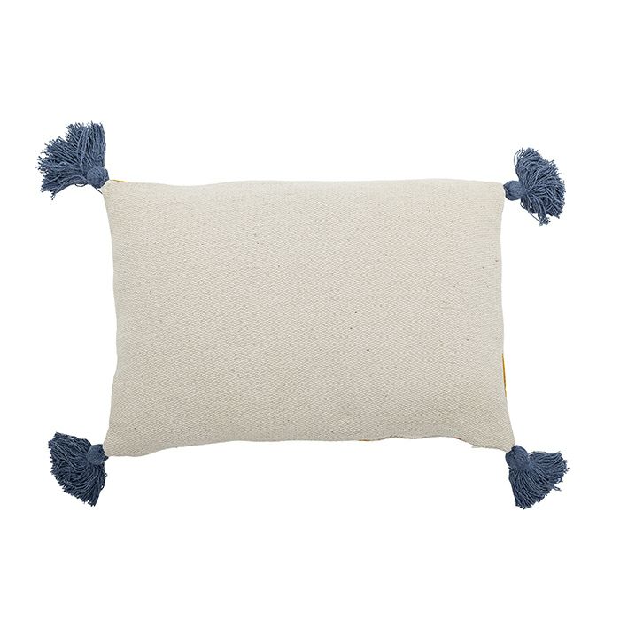 四隅にブルーのフリンジが施されたデザインで、どんな空間にもスタイリッシュにマッチします。