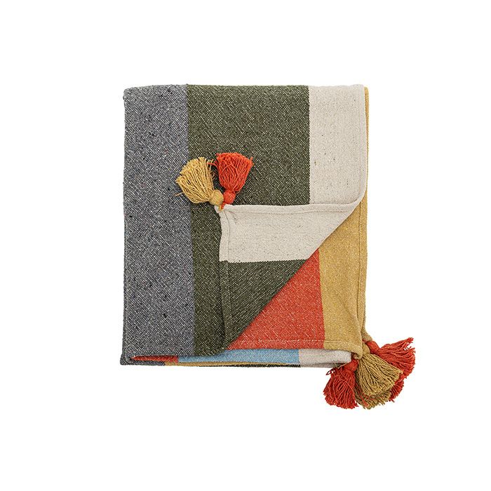 温かみのある色調とダークカラーのハーモニーが美しいブランケットです。