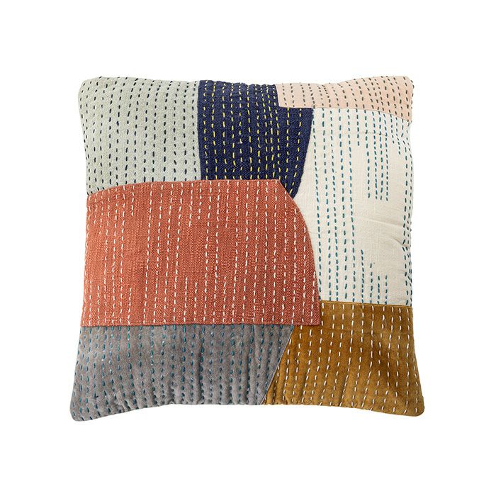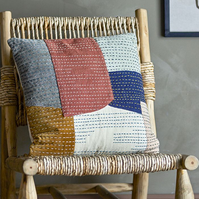 繊細な刺繍のディテールと美しい織り模様を組み合わせたクッション。