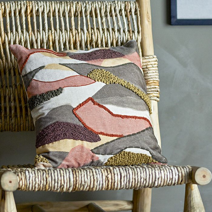 プリント、刺繍、タフティングなどの様々な組み合わせが目を引きます。