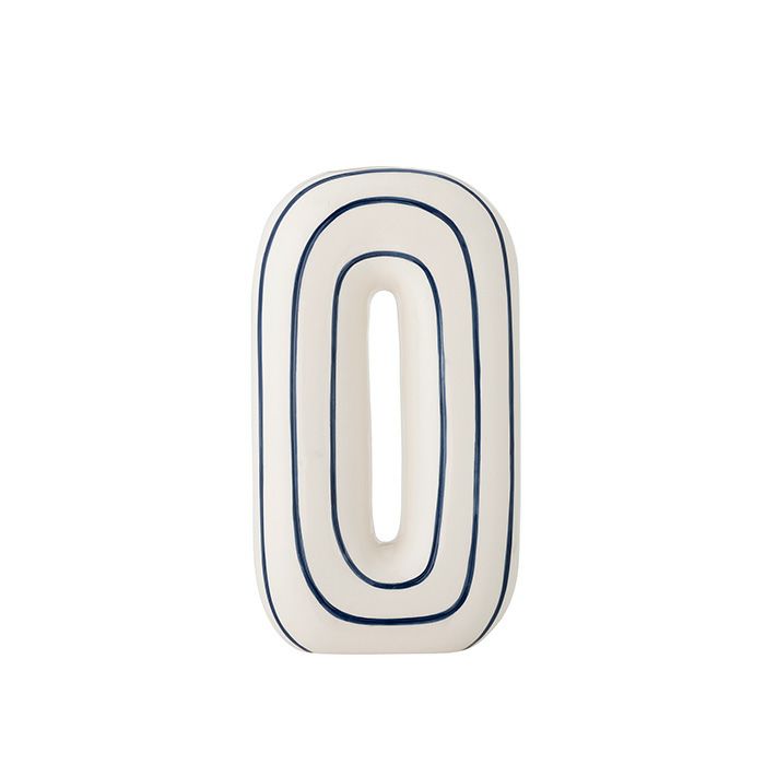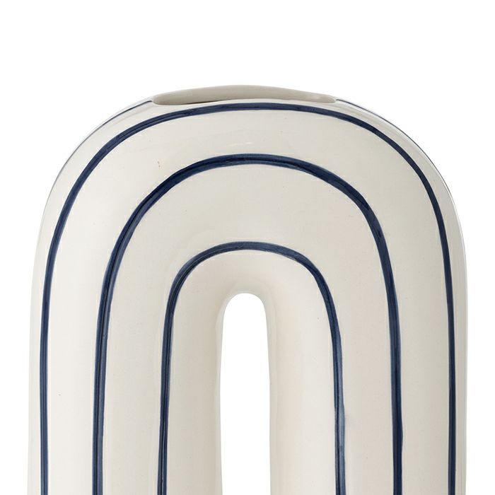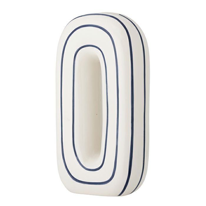 白をベースに、ネイビーのラインをランダムにあしらったスタイリッシュな花瓶です。