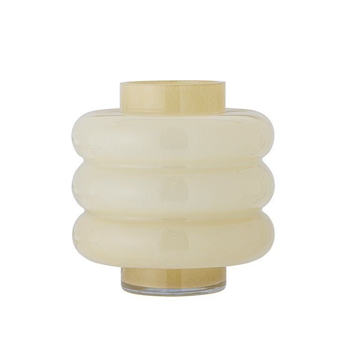 やわらかなイエローのユニークなシルエットのフラワーベース。