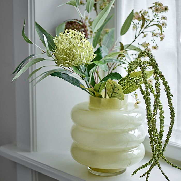 ガラスならではの透明感と軽やかさを備え、花を活けてもオブジェとして飾っても映える存在感。