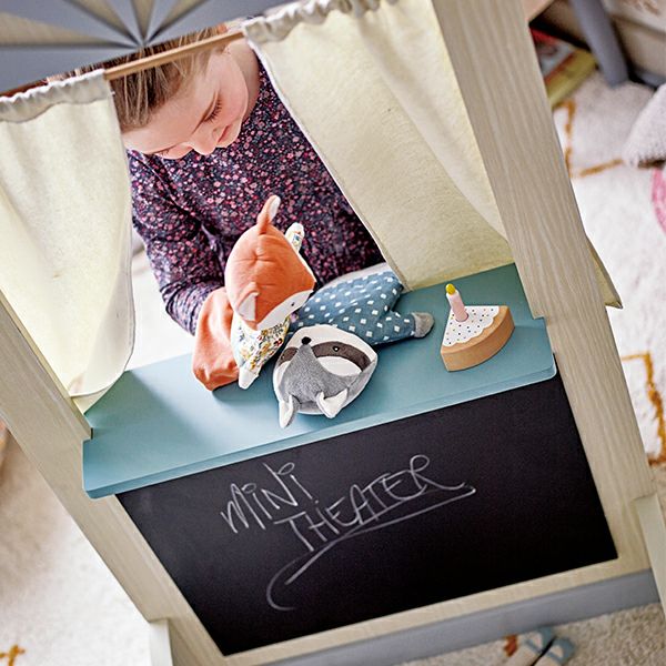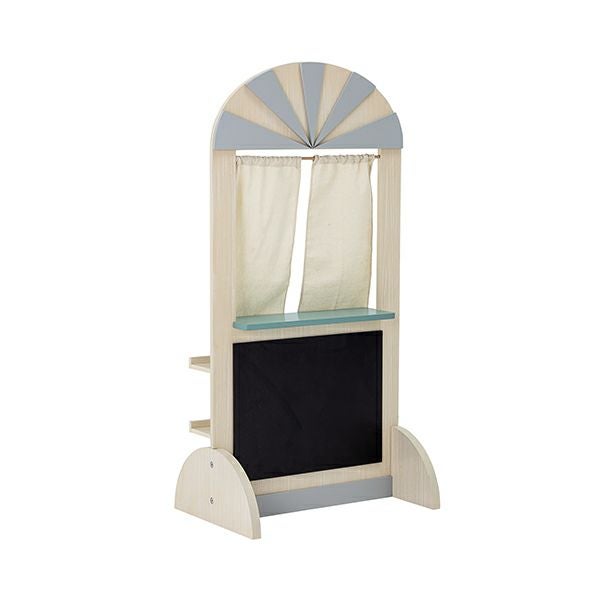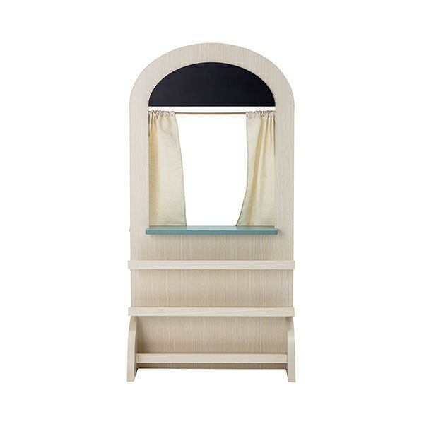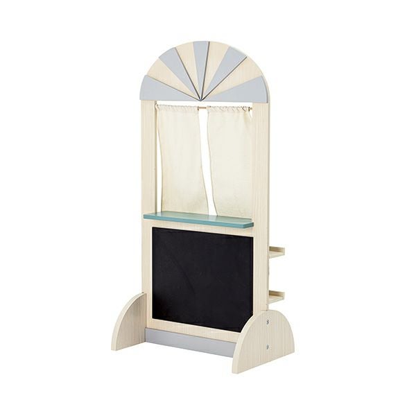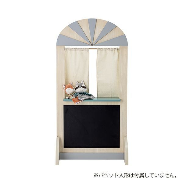表裏2Way仕様で人形劇やお店屋さんごっこが楽しめちゃうシアター型の台です。「今日は何をして遊ぼうかな」と豊かな感性や想像力が育てられそう。子供たちの想像力次第で何にでもなってしまうおもちゃです。ギフトにもぴったりです。