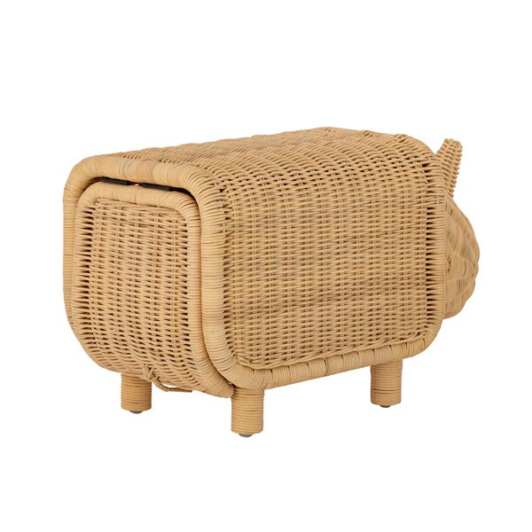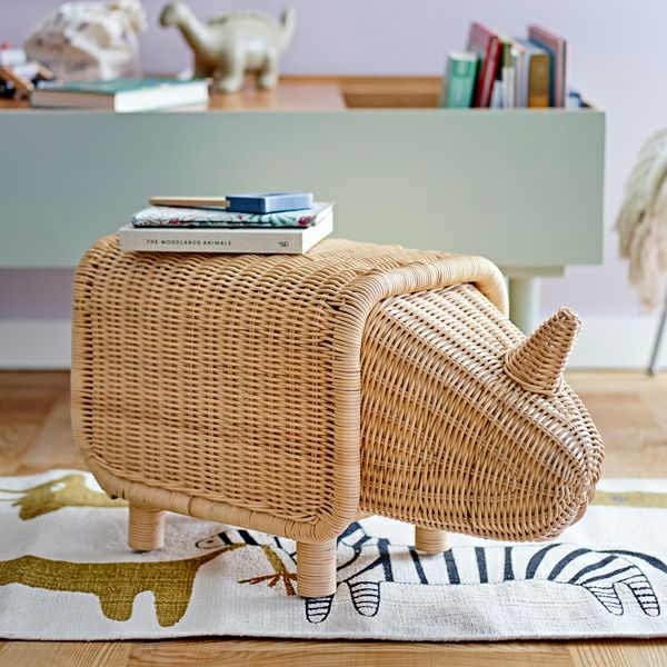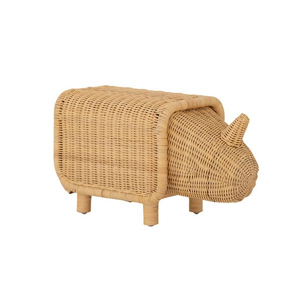 頭と尻尾が付いたラタンの可愛らしいサイのベンチです。