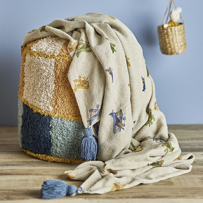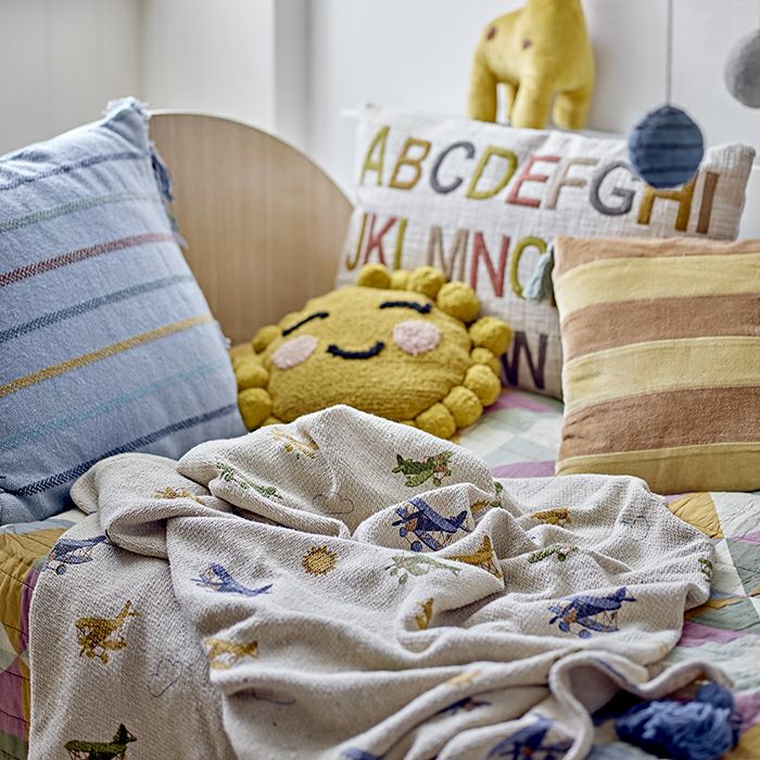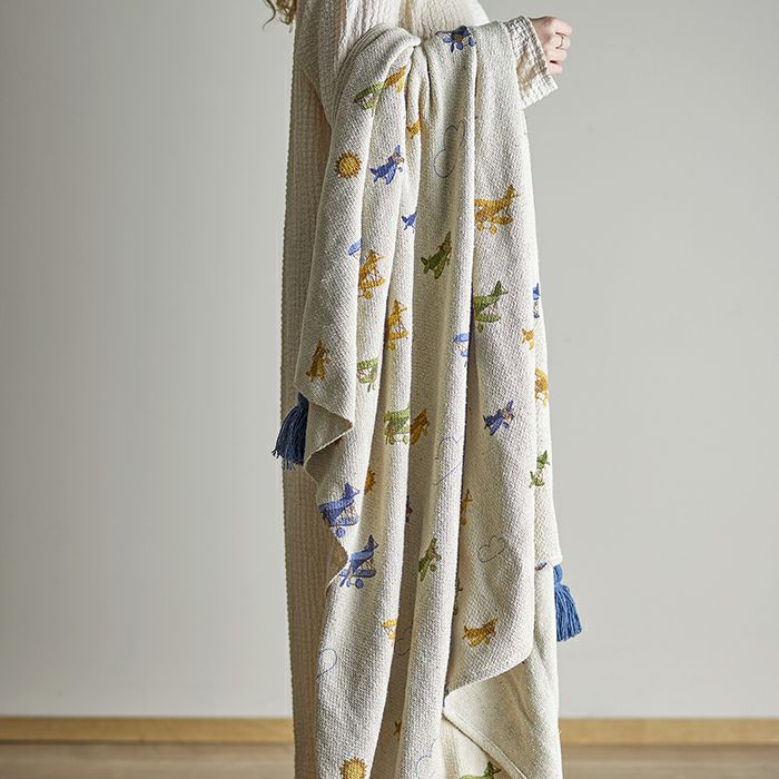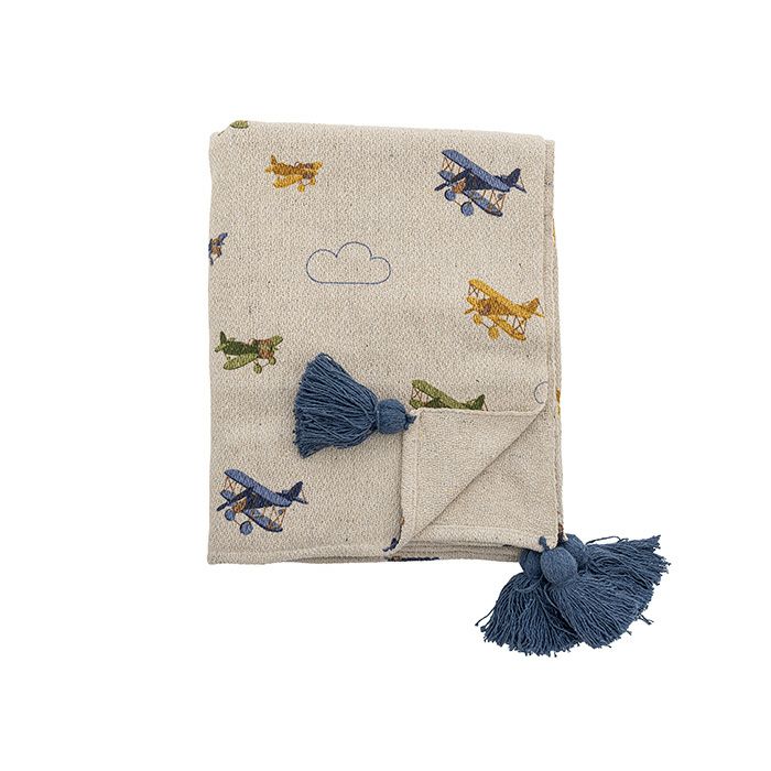 飛行機や雲のモチーフがあしらわれたブランケット。